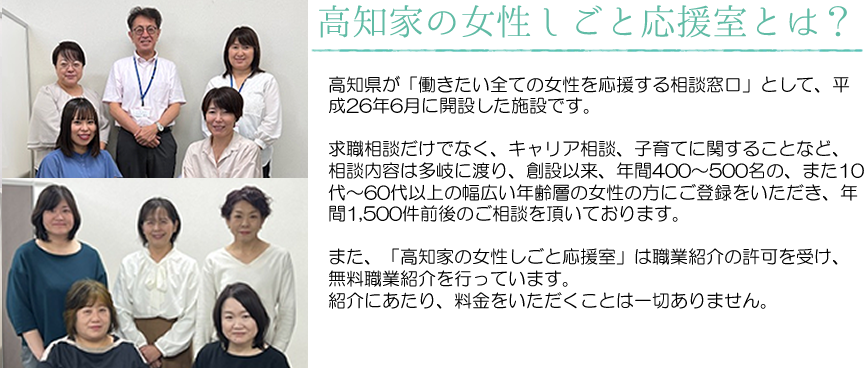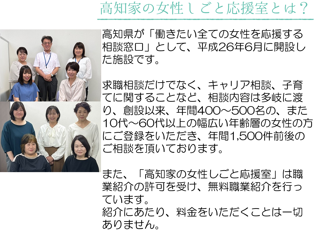 高知家の女性しごと応援室は、高知県が開設した「働きたい女性を応援する相談窓口」です。