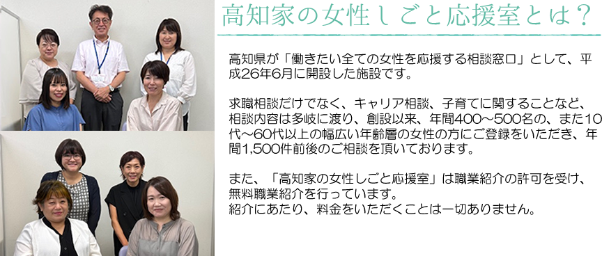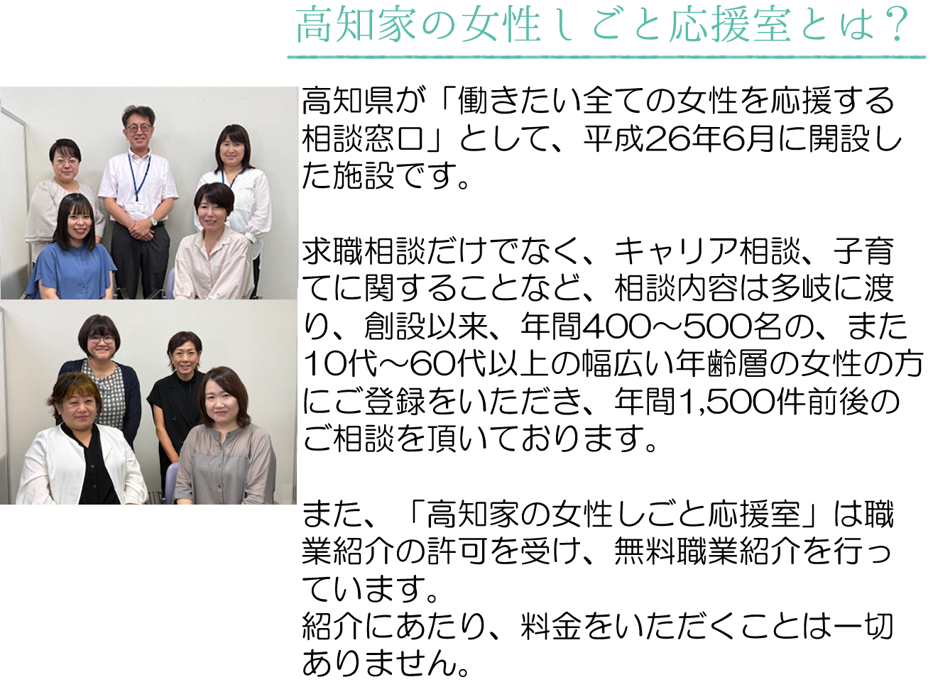 高知家の女性しごと応援室は、高知県が開設した「働きたい女性を応援する相談窓口」です。